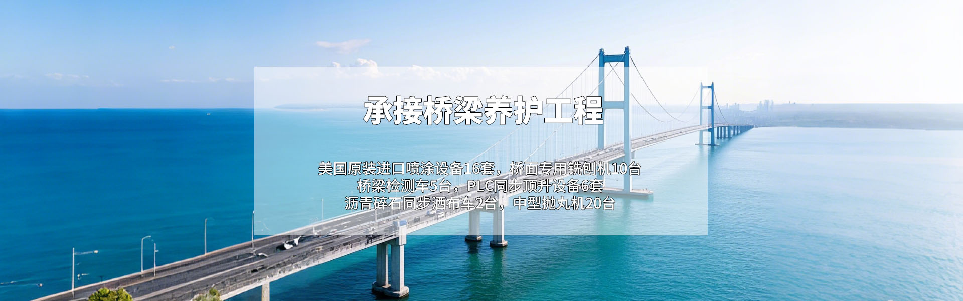 本公司集科研、生產、銷售、施工于一體,主要從事橋梁加固、隧道防水、涂料施工、支座調整、更換、橋面防水、施工、橋面拋丸、銑刨、路面粘結施工、伸縮縫的安裝與維護。